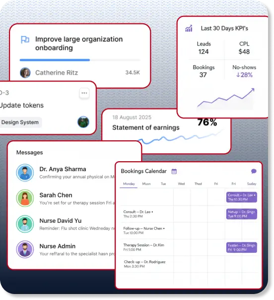 Lead captured → instant follow-up (email/SMS/WhatsApp) → calendar booking + reminders → pipeline & team tasks → analytics. You’ll see every step in the CRM.