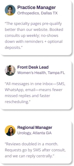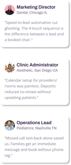 Built for it. Separate numbers, calendars, pipelines, and reporting per location, with roll-up dashboards for HQ.