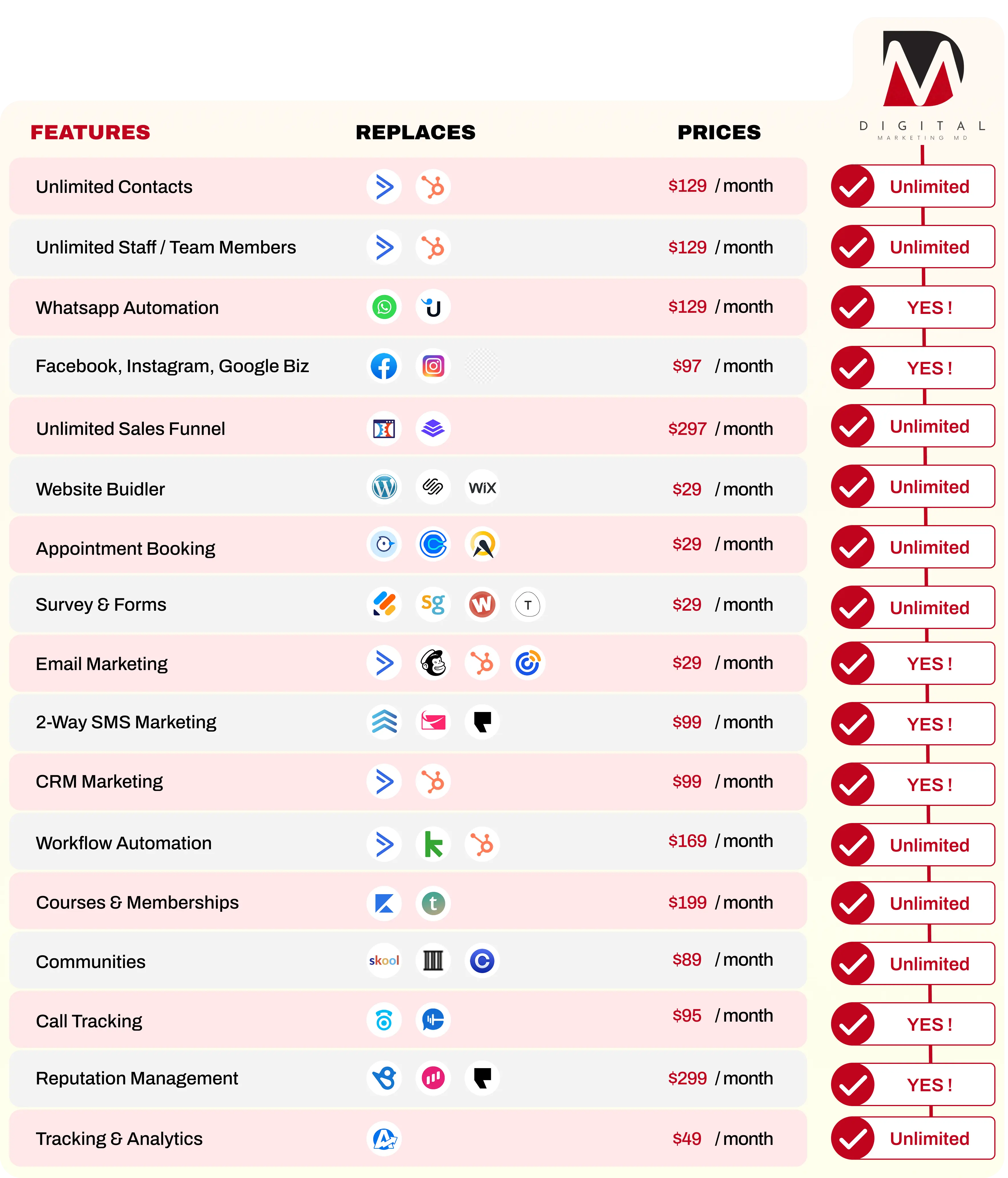In most cases, yes. Our platform covers pages, CRM, automations, email/SMS, calendars, pipelines, simple courses, surveys/forms, and reporting.
